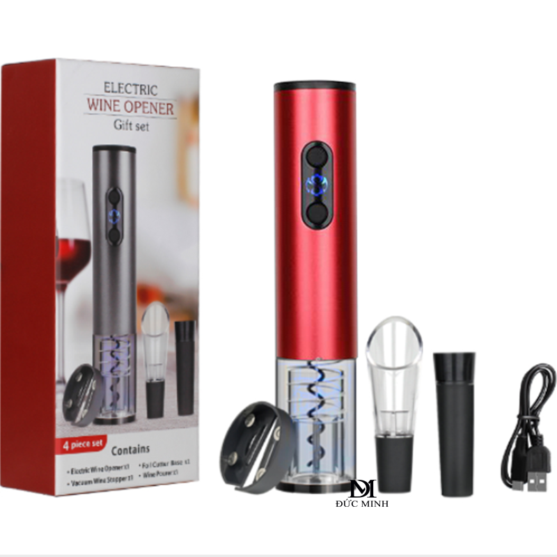 Bộ mở rượu vang bằng điện 4 món là sản phẩm giúp bạn dễ dàng mở nút rượu vang, bảo quản và rót rượu chuyên nghiệp nhất hiện nay