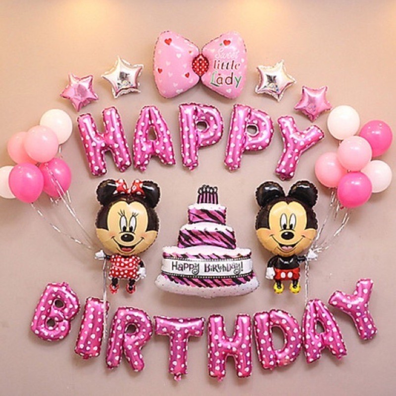 Set Trang trí gồm:- 1 Bộ chữ Happy Birthday Hồng cao 40cm