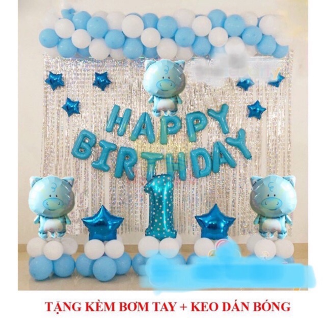 Set Bóng Sinh Nhật Bé Tuổi heo 1 Tuổi gồm:- 1 bộ chữ Happy Birthday ( các mẹ có thể chọn màu)