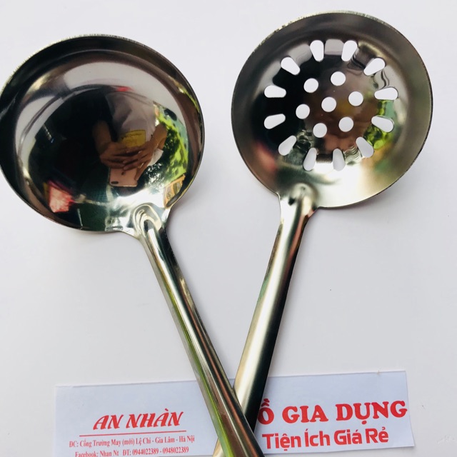 Nhà cửa & Đời sống > Bộ đồ bàn ăn > Bộ dao kéo || Set thìa (vá) múc canh+ thìa lỗ inox cao cấp sáng bóngCòn hàng