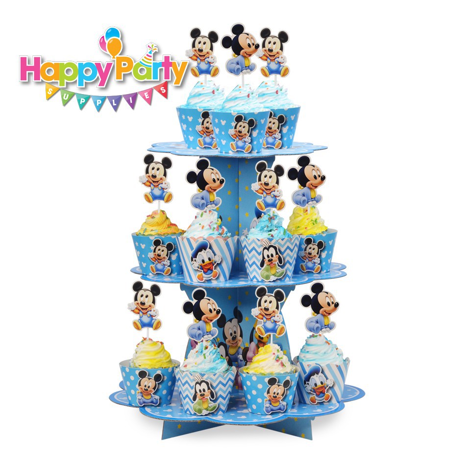 Bộ trang trí bàn sinh nhật cho bé gồm 11 món theo cùng chủ đề Mickey cực xinh: