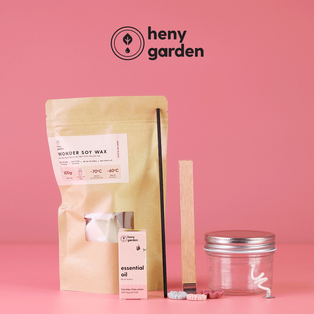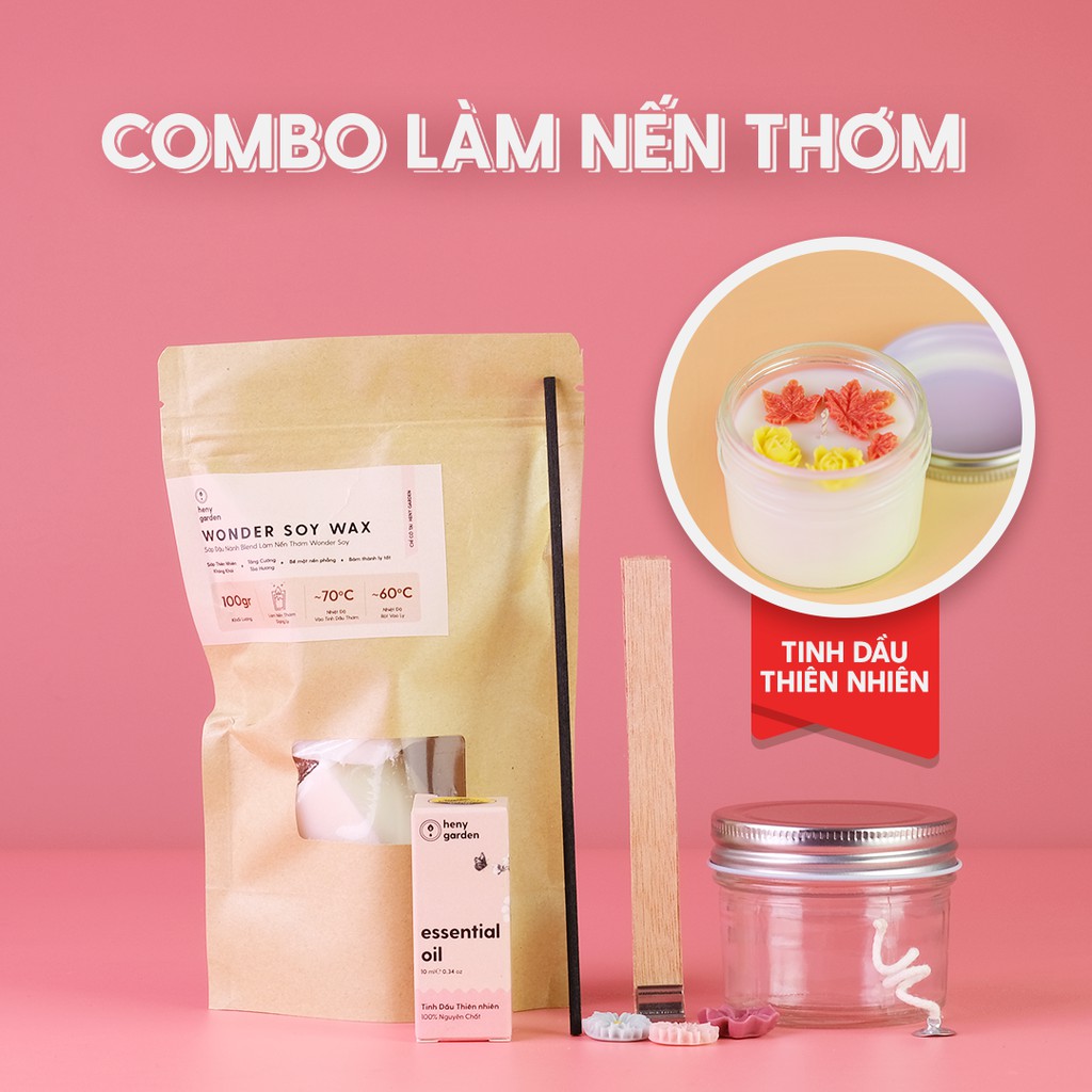Set Tự Làm Nến Thơm Handmade Topping Hoa Với Tinh Dầu Thiên Nhiên Heny Garden - Nguyên Liệu Làm Nến Thơm
