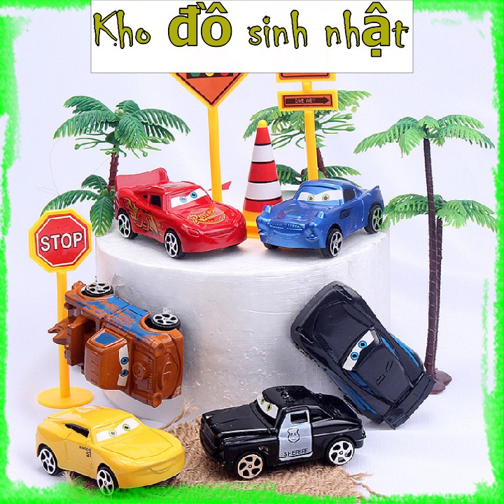 Set xe ô tô hoạt hình trang trí bánh kem, bộ xe ô tô trang trí