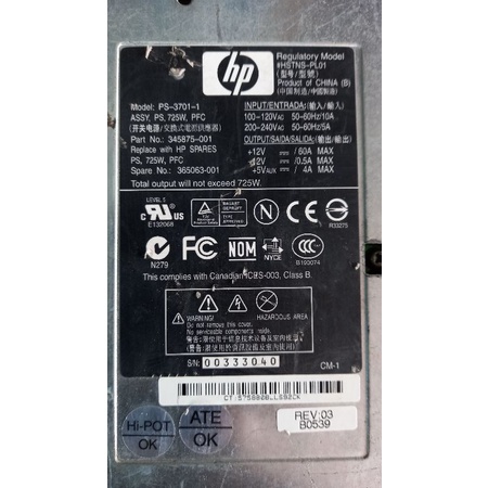 nguồn sever Hp, hàng chính hãng tháo máy đã kích sãn chân cho anh em về dùnginput : 100-240VAC 5A 50/60hz