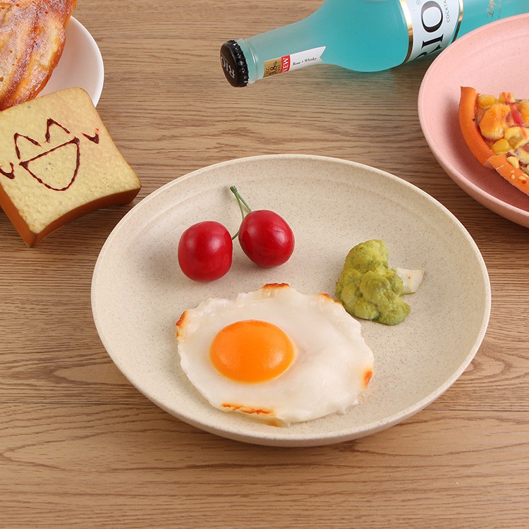 đĩa lúa mì thiên nhiên 20cm tròn. Chất liệu nhựa lúa mì, thường được dùng làm sản phẩm đựng đồ ăn cho trẻ. Phù hợp sử dụng trong việc chế biến thực phẩm.