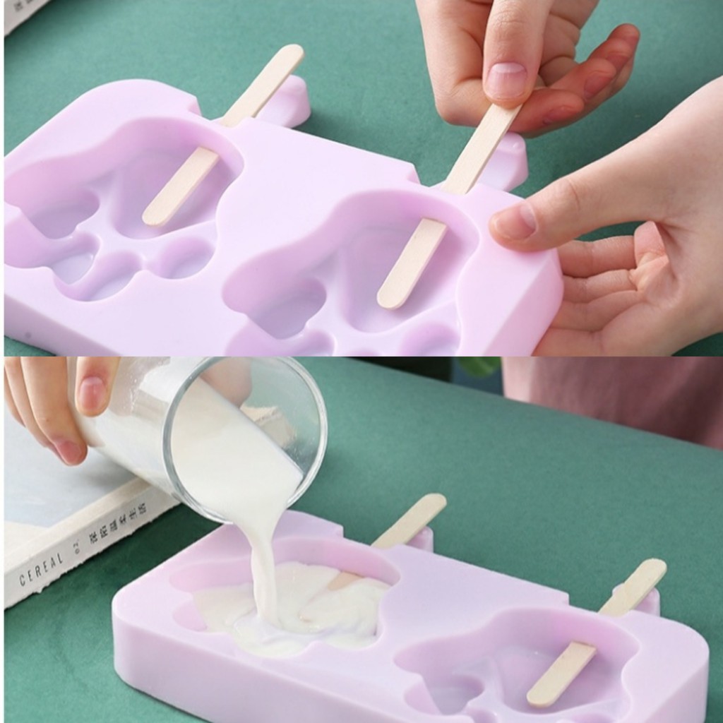 SG - Khuôn làm kem que cho bé bằng silicon, tặng kèm 50 cây que gỗ