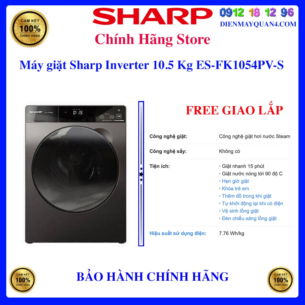 Thiết Bị Điện Gia Dụng > Thiết bị điện gia dụng lớn > Máy giặt & Máy sấy > Máy giặt || [Sharp FK1054PV] Máy giặt Sharp Inverter 10.5 Kg ES-FK1054PV-SCòn hàng