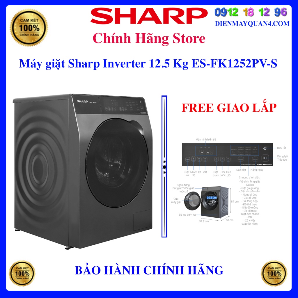 Thiết Bị Điện Gia Dụng > Thiết bị điện gia dụng lớn > Máy giặt & Máy sấy > Máy giặt || [Sharp FK1252PV] Máy giặt Sharp Inverter 12.5 Kg ES-FK1252PV-S, Bảo hành chính hãng 12 tháng.Còn hàng