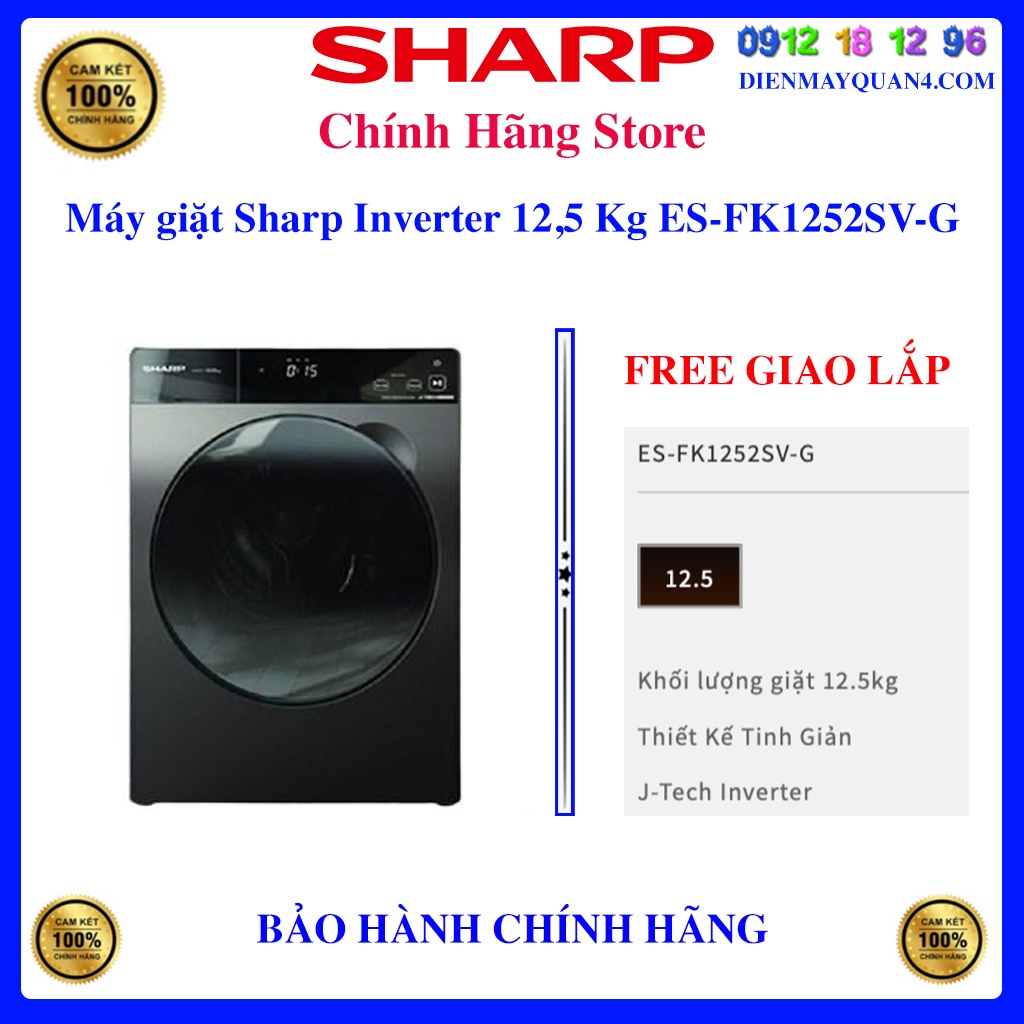 Thiết Bị Điện Gia Dụng > Thiết bị điện gia dụng lớn > Máy giặt & Máy sấy > Máy giặt || [Sharp FK1252SV] Máy giặt Sharp Inverter 12.5 Kg ES-FK1252SV-G, Bảo hành chính hãng 12 tháng.Còn hàng