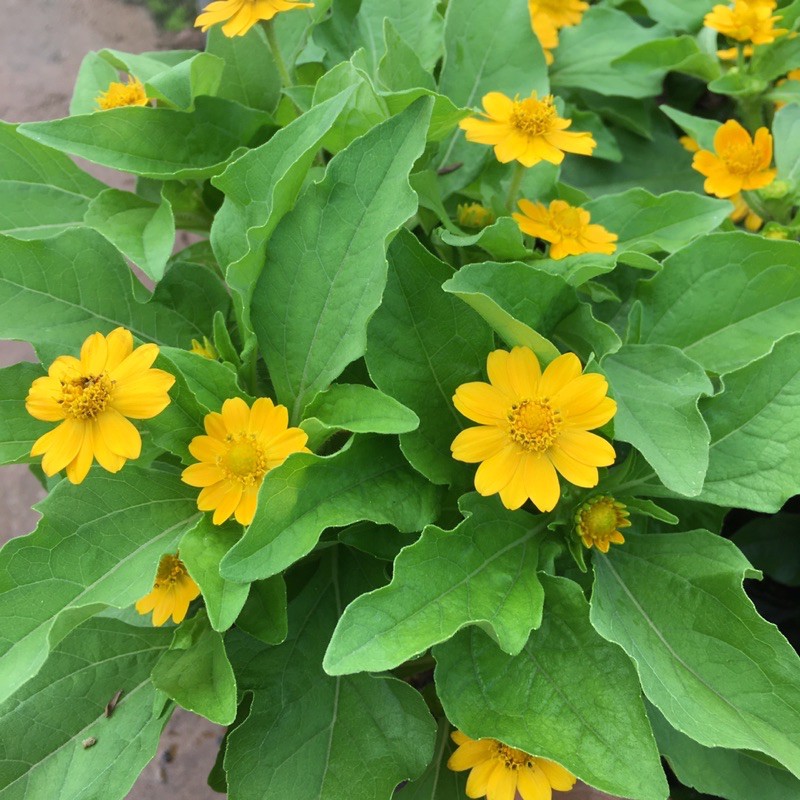 Cúc Mặt Trời thuộc dạng cây trườn, leo thường được trồng theo bụi và là cây xanh tốt quanh năm. Cây có chiều cao khoảng 20- 40cm, phân làm nhiều cành và nhánh nhỏ. Lá là dạng lá đơn, màu xanh, hình bầu dục, lá có lớp lông mịn. Thân cây tròn, có lớp lông mịn.