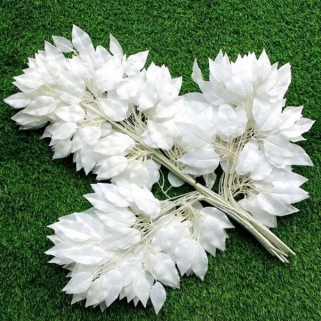 Sỉ 10 cành lá si trắng làm cây giả