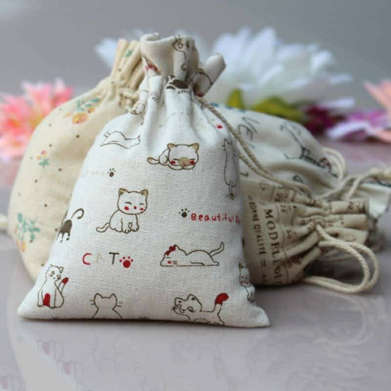 túi vải đựng nữ trang, làm túi thơm.Chất liệu: dây rút + vải bố (còn gọi Canvas, vải lanh)