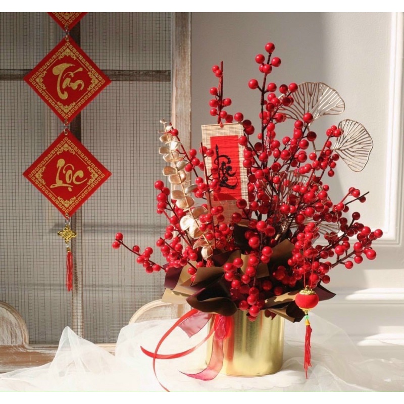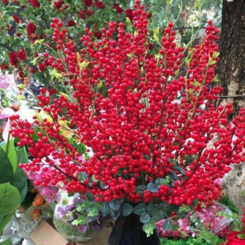 Nhà cửa & Đời sống > Trang trí nhà cửa > Hoa trang trí || sỉ combo 5 cành đào đông, cherry đỏ hàng cao cấp (hoa giả trang trí ngày Tết )Còn hàng