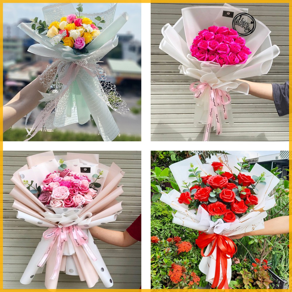 Sỉ hoa sáp bó lớn giá siêu rẻ nhiều mẫu - Bó hoa hồng sáp thơm quà tặng 8/3, 20/10, sinh nhật tặng kèm thiệp
