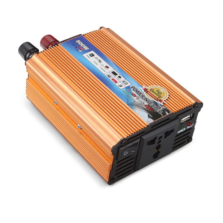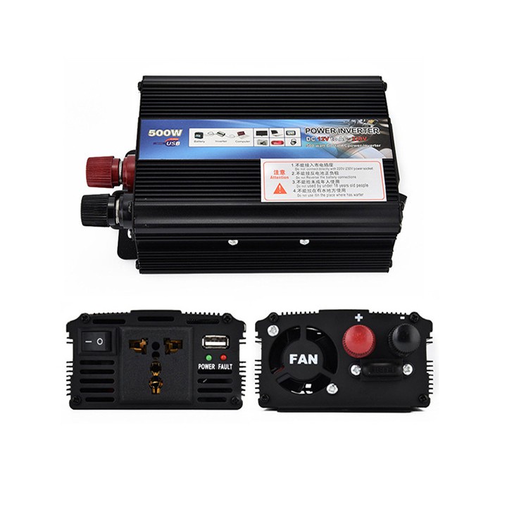 - Với bộ kích điện công suất 500W thì đáp ứng được các nhu cầu sài điện khác nhau: bóng đèn, quạt, tivi led...khi sử dụng các sản phẩm, bạn cần xem công suất của thiết bị đó hoặc tổng công suất của các thiết bị có vượt quá công suất của bộ đổi điện hay không?