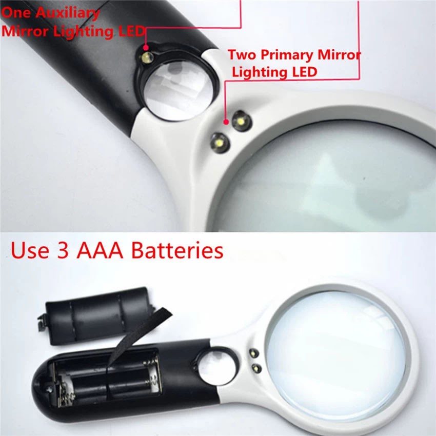 [Sỉ lẻ một giá] Kính lúp cầm tay Magnifier có 3 Đèn Led