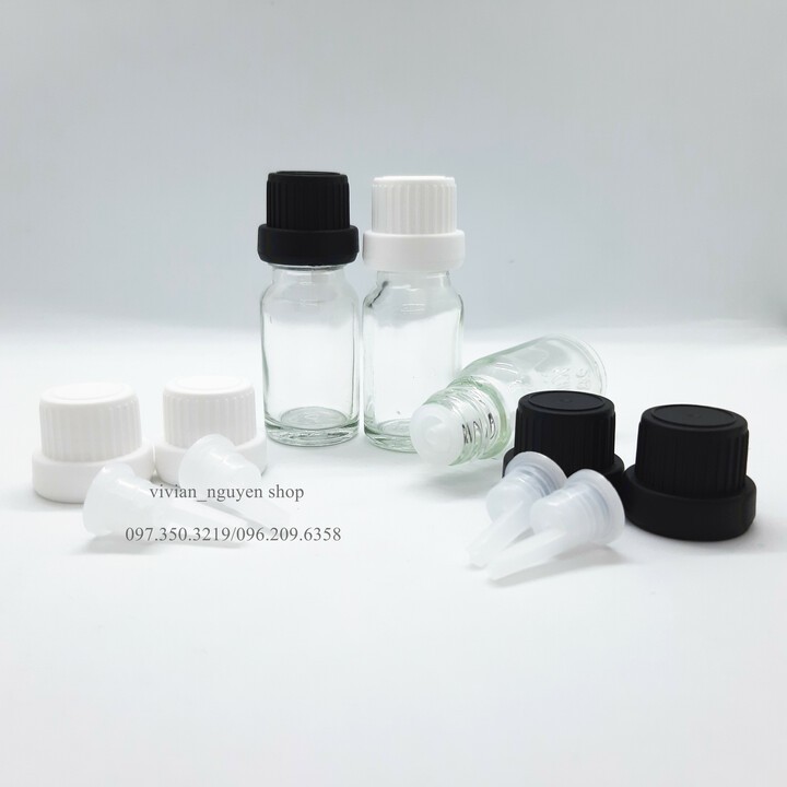{sỉ từ 2,5k} Lọ đựng tinh dầu 10ml, thân thuỷ tinh trong suốt, nhỏ giọt nắp nhựa PP