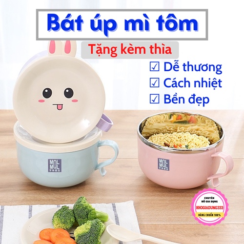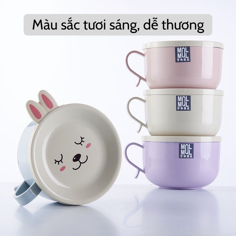 [SIÊU CUTE] Bát ăn mì 🐰 Tô mì lõi inox 2 lớp có nắp kèm thìa chống nóng cách nhiệt cao cấp nắp hình thú tiện lợi giá rẻ