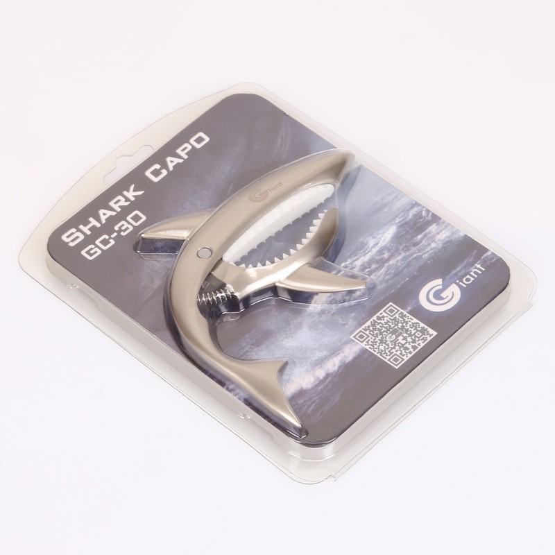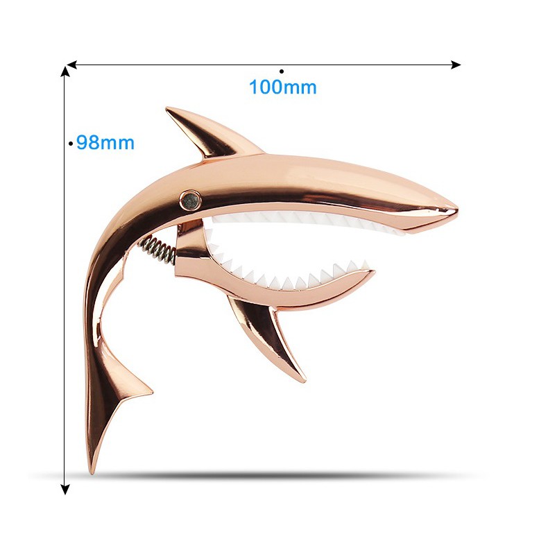 - Không sai khi nói capo đàn Guitar thiết kế hình cá mập một trong số các capo có thiết kế ấn tượng nhất ở thời điểm hiện tại.- Capo kẹp đàn Guitar với cách điệu hình cá mập rất đặc biệt, đảm bảo cây đàn bình thường của bạn bỗng chốc trở lên nổi bật bất ngờ khi Capo được kẹp.