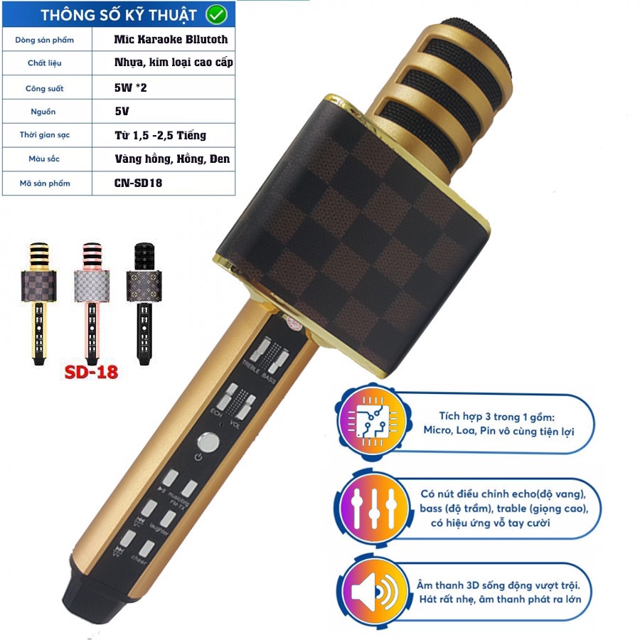 Thiết Bị Âm Thanh > Micro thu âm || [SIÊU HAY] Micro hát karaoke bluetooth SD18, mic hát livestream trên điện thoại tích hợp loa, Kết nối blt 5.0Còn hàng