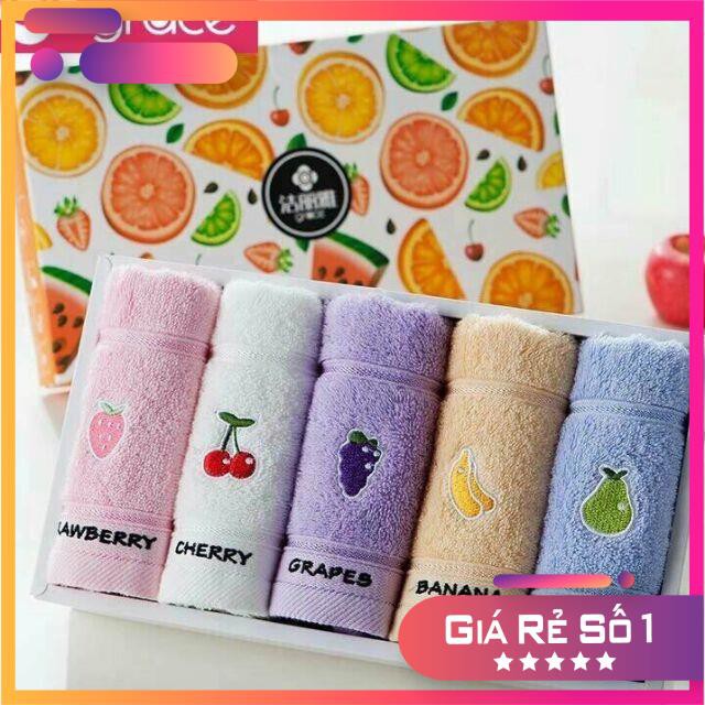 [ SIÊU KHUYẾN MẠI ] Bộ 5 khăn mặt cao cấp thêu hình hoa quả chất liệu cotton kèm hộp sang trọng.