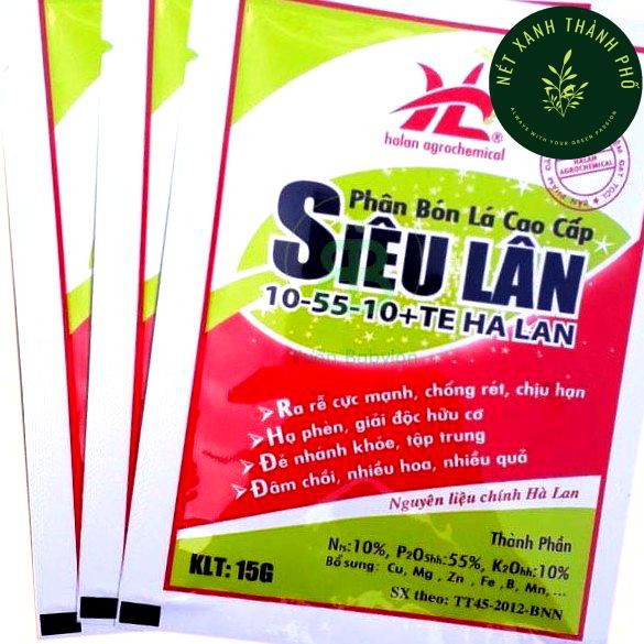 Phân Bón Lá Cao Cấp Siêu Lân Hà LanLà sản phẩm phân bón chứa hàm lượng lân cao giúp bộ rễ phát triển mạnh ở gian đoạn cây con, giúp hoa ra nhanh và đồng loạt, chống rét, nghẹt rễ gây thối rễ, rễ chậm phát triển.