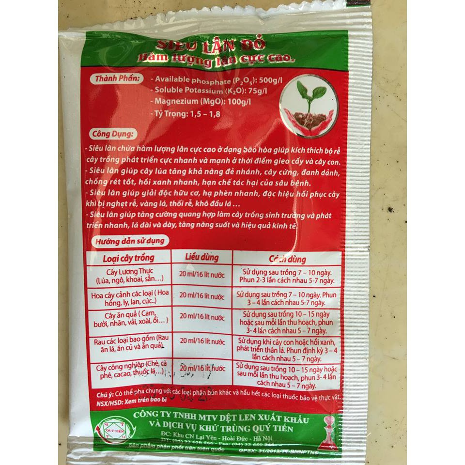 Siêu lân đỏ là loại phân bón qua lá có chứa các nguyên tố P, K và Mg có tác dụng:Siêu ra rễ cực mạnh.