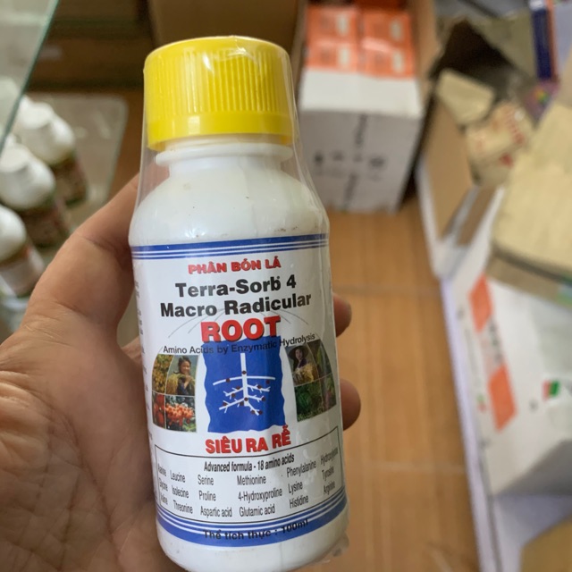 Phân bón lá cao cấp siêu ra rễ Terra Sorb 4 Root (100ml)Phát triển bộ rễ nhanh, khỏe, dễ dàng phục hồi sức sống cho cây, nguồn bổ sung dinh dưỡng đa trung vi lượng (18 amino axit), vitamin kịp thời, phân hữu cơ sinh học tốt cho môi trường và con người.
