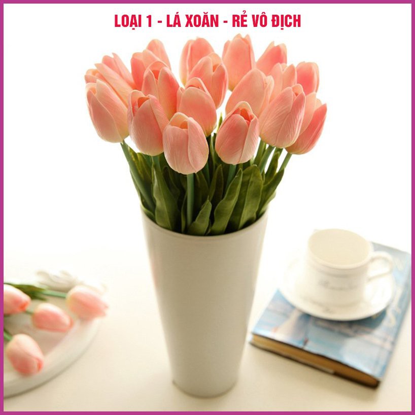 Siêu rẻ-Loại 1 lá xoăn-Hoa giả-Hoa tulip giả bằng nhựa PU cao su cao cấp như thật - Trang trí nội thất, phòng