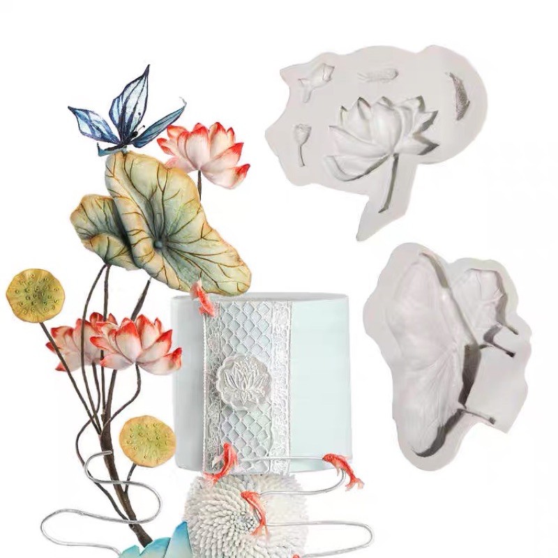 silicon bộ hoa sen + lá sen