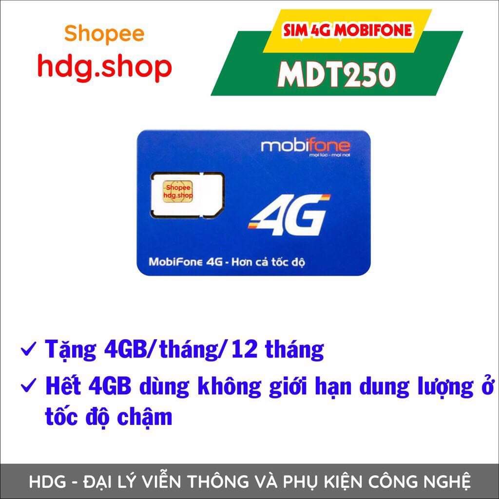 Sim 4G Mobifone - 4G/ Tháng MDT250 dùng 1 năm không nạp tiền