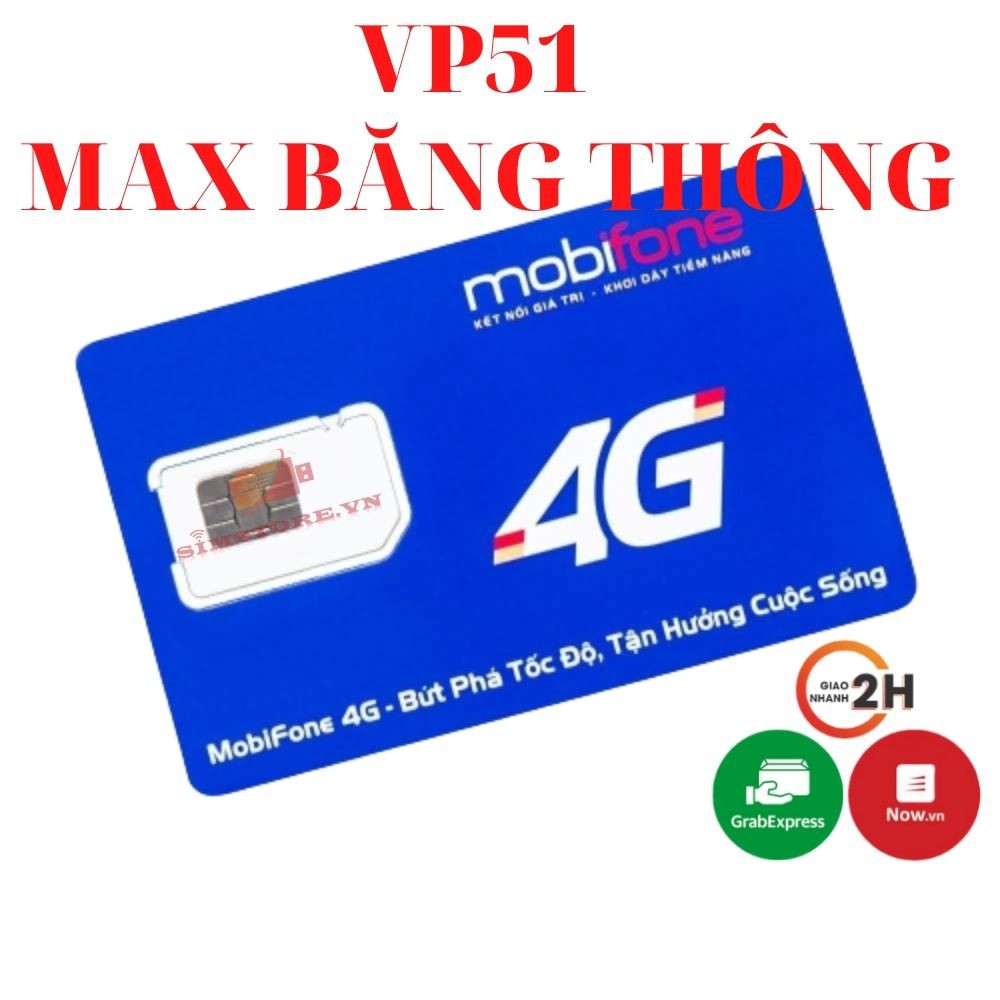 Sim 4G Mobifone VPB51 , Sim max băng thông tốc độ cao , 100k/tháng , Miễn Phí tháng đầu