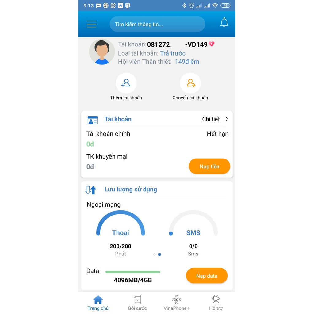 - SIM chính hãng Vinaphone; Gói cước 12VD149