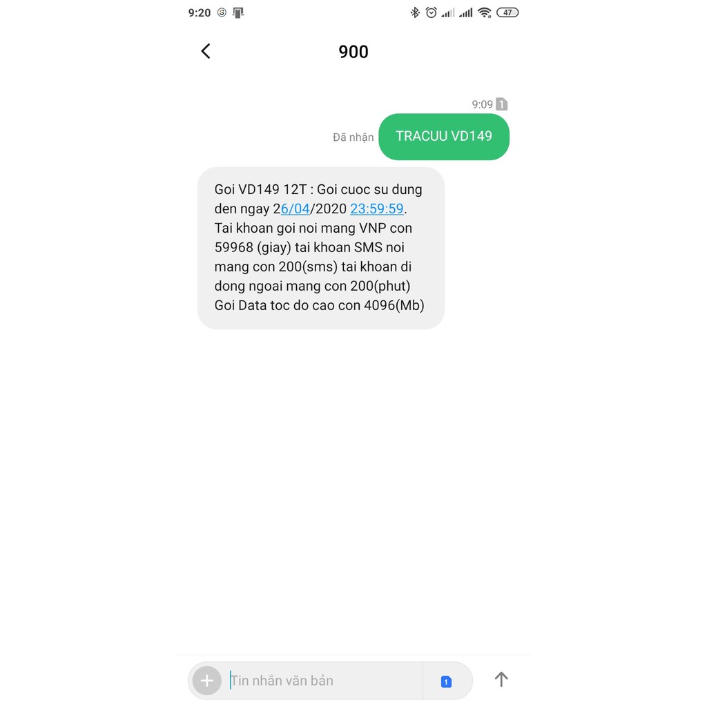 - Kiểm tra KM: TRACUU D60G gửi 900 & TRACUU VD149 gửi 900