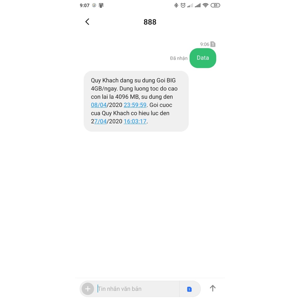 - Kiểm tra DATA: DATA gửi 888 hoặc app My VNPT