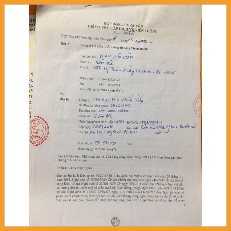 - Số đăng kí : Được ghi trên sim