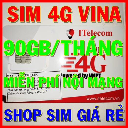 Giới thiệu Sim Itelecom mạng sim 4G Vinaphone gói 3GB/ngày (90GB/tháng) + Miễn phí gọi nội mạng Vina 4g