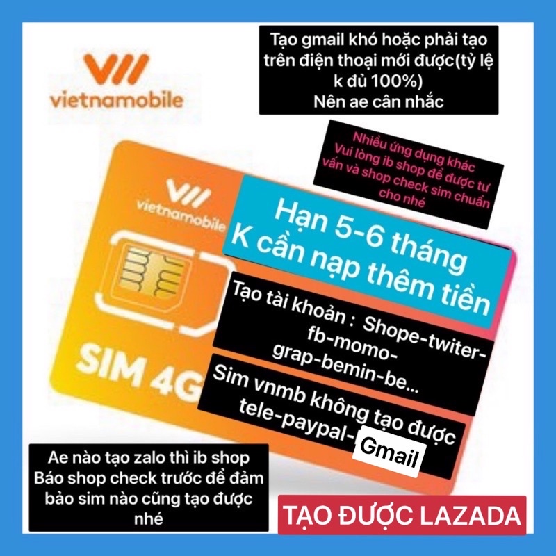 Điện Thoại & Phụ Kiện > Thẻ sim || Sim VNMB tạo tài khoản hạn sử dụng 6 tháng , sim vietnamobile giá rẻCòn hàng