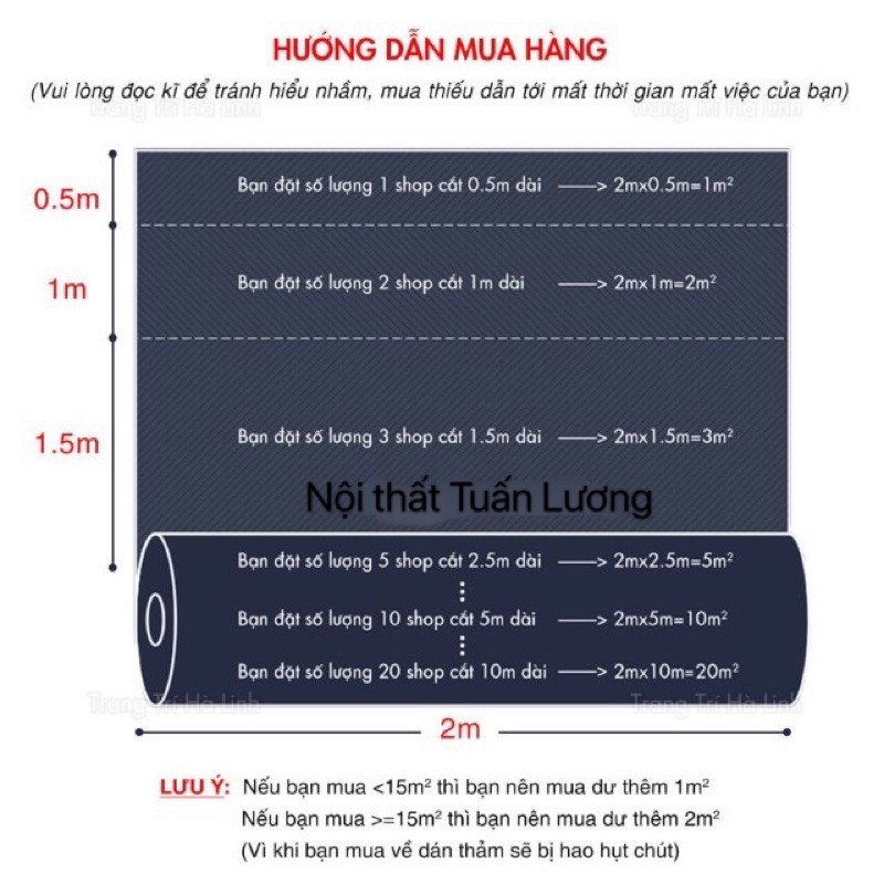 - Khách đặt số lượng 1 lần nghĩa là 1m2, thì shop sẽ cắt tấm simili 2m x 0.5 = 1m2