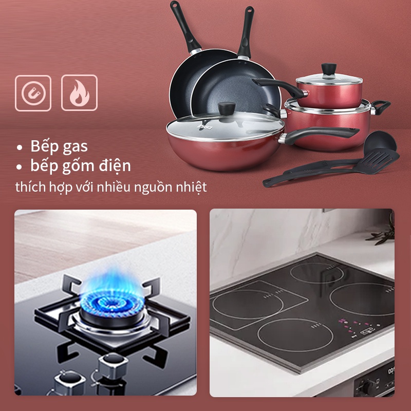 Simplus Cherry Nồi chống dính bếp từ, bếp gas, dụng cụ nấu ăn chống dính chuyên dụng, chảo đa năng