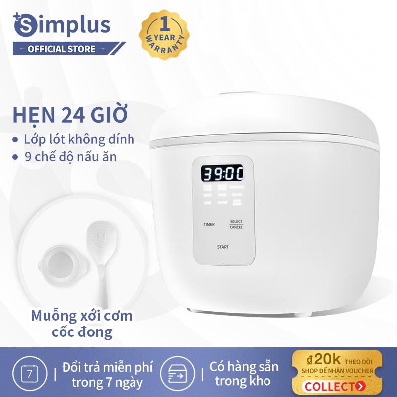 Giới thiệu Simplus Nồi cơm điện đa năng 2L Thích hợp cho 1-2 người Chức năng hẹn 24 giờ Bảo vệ kép chống cháy khô và quá nhiệt
