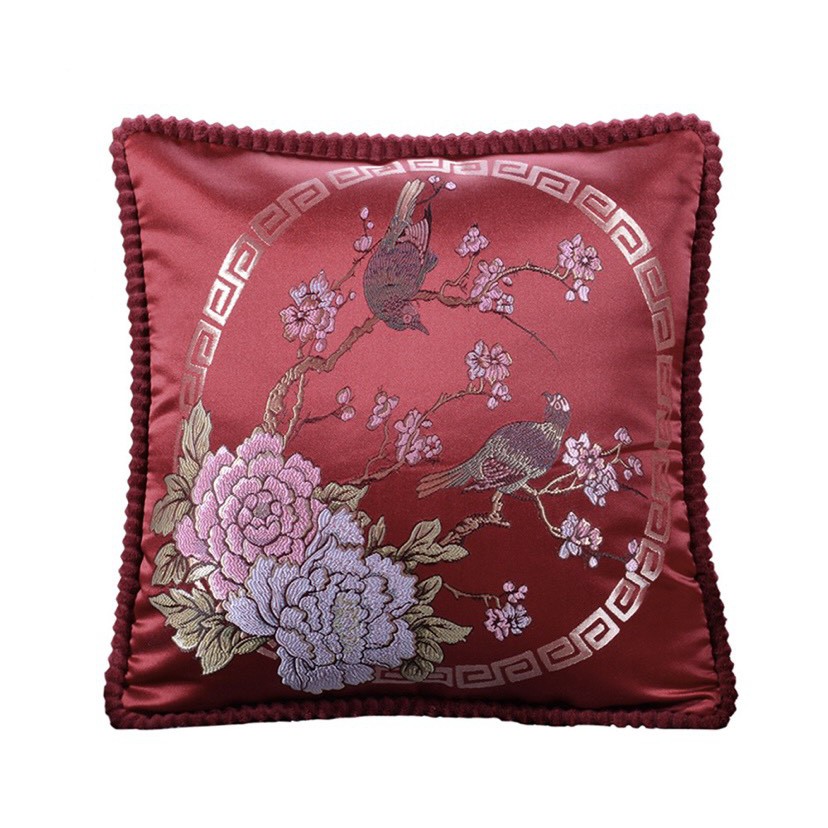 [ SIZE 48x48 CM ] VỎ Gối Tựa Lưng THÊU NHỮNG CHÚ CHIM NỔI CAO CẤP SBK097