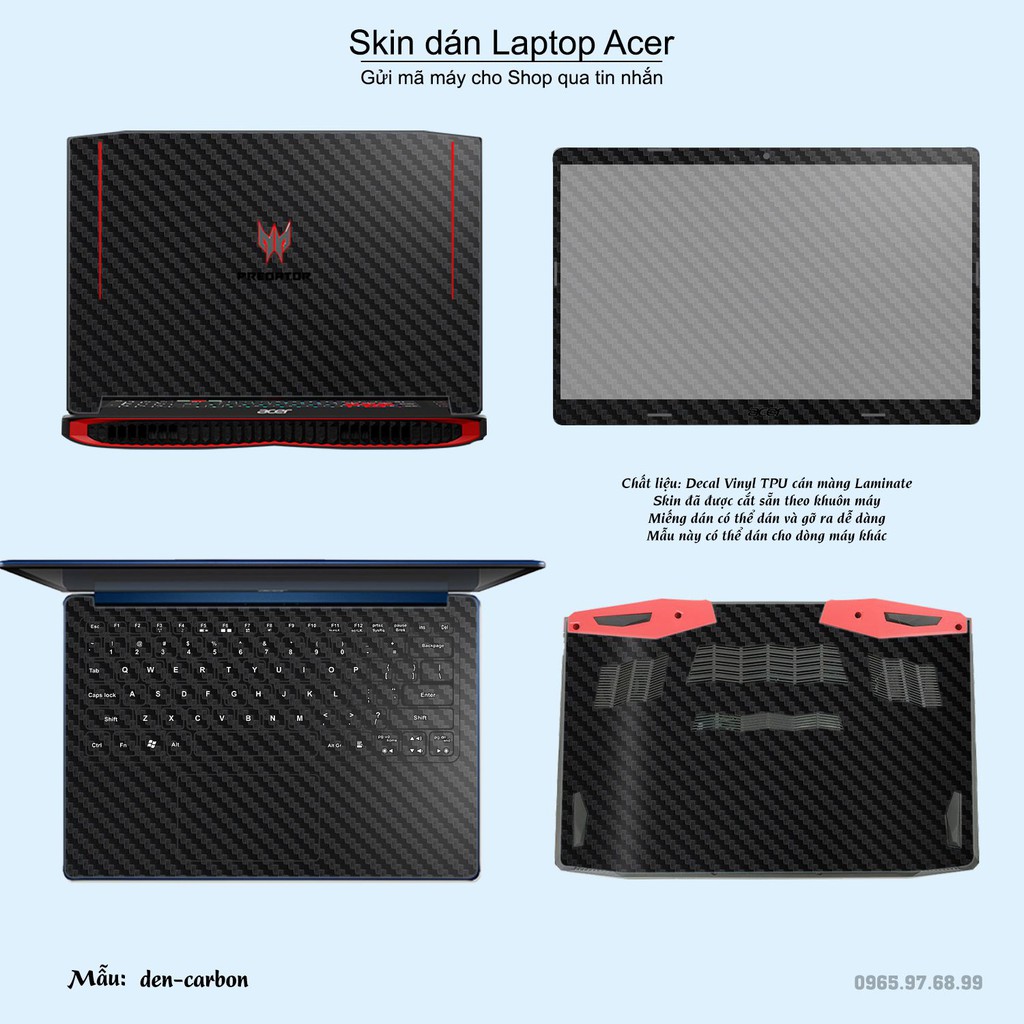 Skin dán Laptop Acer màu đen carbon (inbox mã máy cho Shop)