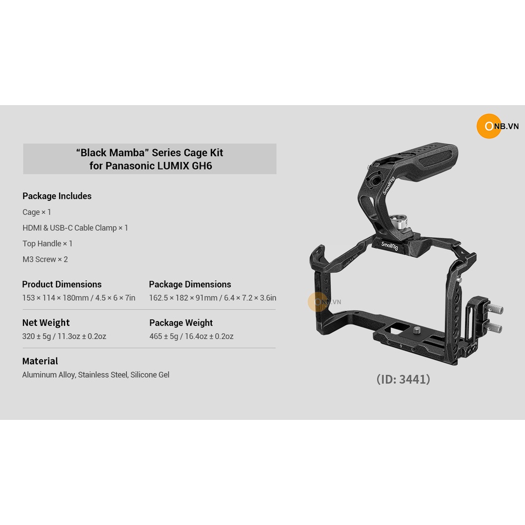 SmallRig Black Mamba Full Kit Panasonic LUMIX GH6 code 3441 - Mẫu cage khung full + top handle + kẹp HDMI full set hỗ trợ quay mới cho dòng máy ảnh Lumix GH6 mới ra 2022 !Thiết kế hoàn toàn mới tối ưu cho quay phim, phần khung làm cho cảm giác cầm thoải mái hơn và đặc biệt gia công hợp kim nhôm + magie cho khung nhẹ hơn, chắc hơn.