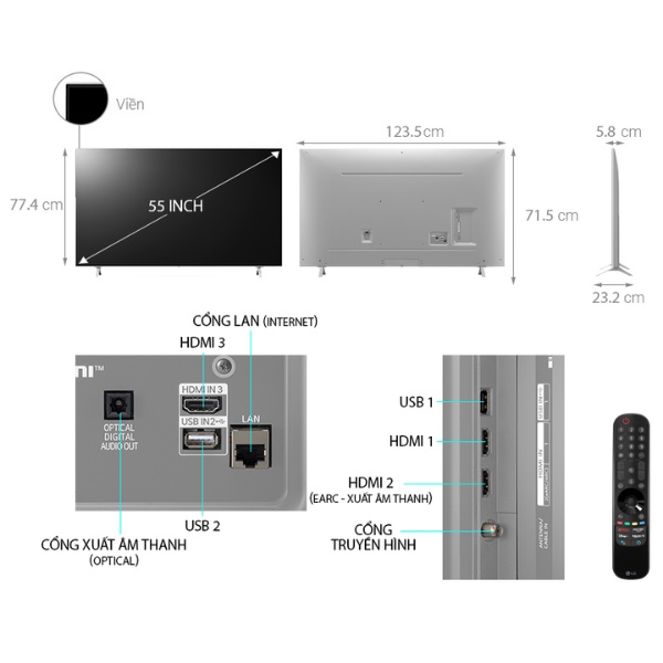 Thiết Bị Điện Gia Dụng > Tivi & Phụ kiện > Tivi || Smart Nanocell Tivi LG 55 Inch 4K 55NANO77TPA ThinQ AI - Model 2021Còn hàng