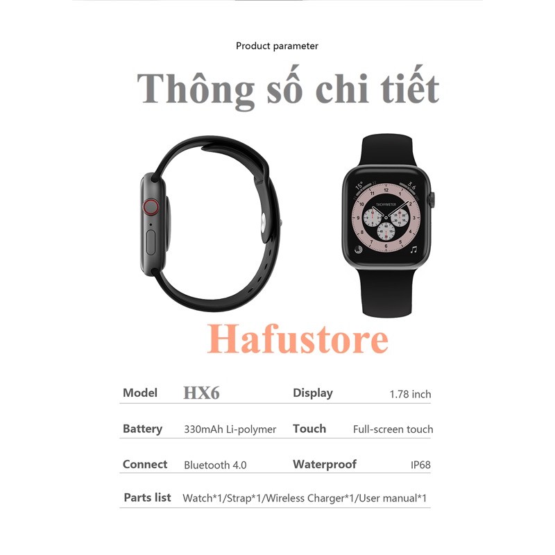 Hafustore cam kết bảo hành 1:1 trong 1 tháng cho tất cả các mẫu mã mình cung cấp khách hàng yên tâm sử dụngThông số kỹ thuật đầy đủ của Đồng hồ thông minh HAFU HX6: