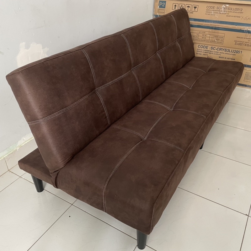 Sofa giường - Sofa Bed bọc da lộn màu nâu đen kích thước 1.8m x 90cm