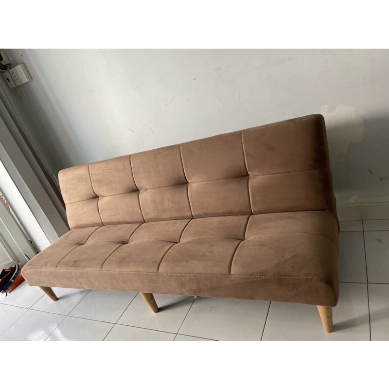 Sofa giường vải Nhung - Sofa bed bọc vải màu nâu cacao sang trọng