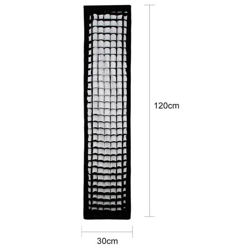 Softbox tổ ong Godox 30x120cm là một trong những phụ kiện cần thiết trong mọi studio, softbox tổ ong 30x120cm giúp gom sáng, kết hợp với lớp vải lọc bên ngoài sẽ làm dịu ánh sáng và làm các tia sáng chiếu tới người mẫu chuẩn và đẹp nhất. Godox FW30120 tạo vùng tương phản sáng tối, đồng thời còn nhấn mạnh các khối rõ ràng chi tiết. Sản phẩm softbox tổ ong 30x120cm chính hãng Godox được bán tại thietbiquayphim.com với giá tốt nhất thị trường.THÔNG SỐ KỸ THUẬT: