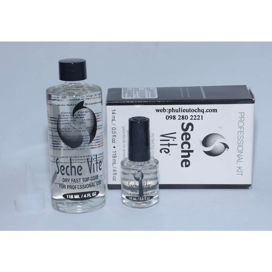 Với bộ sơn bóng Seche, sản phẩm gồm: 1 chai sơn bóng có cọ, 1 chai sơn bóng lớn không cọ, 1 phễu để chiết từ chai lớn sang chai nhỏ.